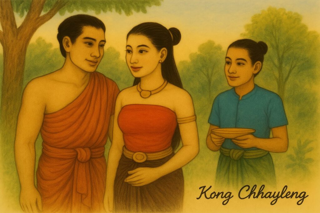 មាននាយពាណិជ្ជម្នាក់មានភរិយារូបស្រស់ឆើតឆាយ ចូលចិត្តរួមបេតីតែជាមួយខ្ញុំបម្រើរបស់ខ្លួន។ថ្ងៃមួយនាយពាណិជ្ជឃើញភរិយាកំពុងថើបជញ្ជក់មាត់ជាមួយបាវបម្រើម្នាក់។ឃើញប្ដីដើរចូលមកនាងជាភរិយា ច្រានខ្ញុំបម្រើនោះចេញ ហើយដើរទៅក្លែងនិយាយប្រាប់ស្វាមីថា៖